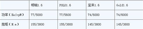 让我们先从参数上来看看这几款车的1.6L发动机。