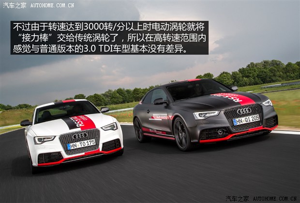 本周我有幸驾驶了搭载配有电动涡轮的3.0 TDI发动机的车辆:奥迪RS 5和奥迪A6,不过这两款车目前还是“概念车”身份,没有量产。