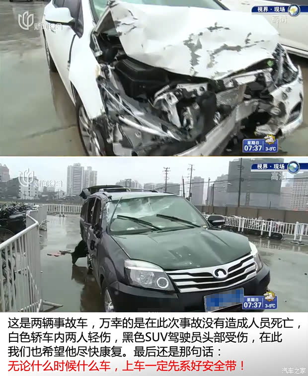 不幸中的万幸是,在此次事故中,白色轿车内的两人只是受轻伤,黑色SUV驾驶员头部受伤,但并无致命伤害,我们一起祝福这位不幸的驾驶员早日康复。而在通过这次事故,也提醒更多的朋友,在行驶中真的会有突如其来的情况,千万不要有侥幸心理,最最最最基础的事情,就是无论坐在车上哪个位置都必须系好安全带!其次是要按照各个道路的限速行驶,因为限速都是根据道路的特征测试出来的安全值,不要侥幸,更不要逞强;最后,平时一定要多了解一些自己爱车的行驶特性,这样才能更好地驾驭它。(文/汽车之家 汪淼)