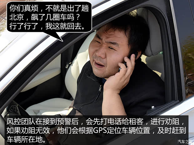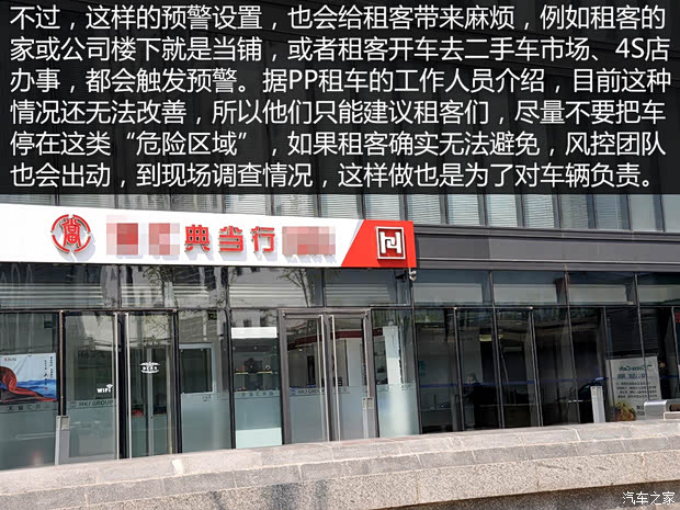 以上的情节是现实生活中真实的案例,有少数租客在租到一些所谓的“好车”、“性能车”时,就会忍不住去飙车;还有一些租客在租车时答应不会开车去外地,但租到车后就不遵守承诺。这些行为对于PP租车来说,都属于风控范围内;另外,当发现车辆停放在4S店、修车店、当铺、二手车市场等地方时,他们就会启动风控预案,先打电话给租客进行劝阻,如果租客不听,他们会根据GPS的定位,赶到车辆所在地观察情况,必要时还会强行收车。