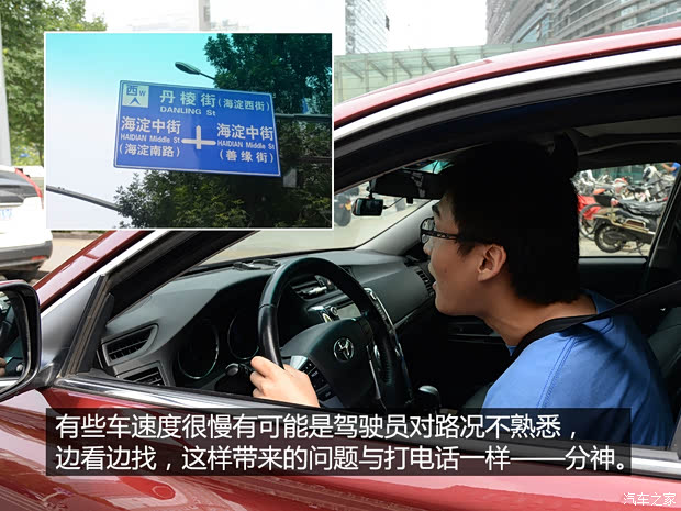 这也是一条造成龟速行驶的主要原因,路线不熟悉,不知道往哪里开,于是就边开边找,脑子里想着地址名称眼睛瞟着各种地标,这时候你的注意力就被分散了许多,而对于前方和后视镜中情况的观察就会大打折扣。当然把所有的道路都记下来是不现实的,只能是建议每次去不熟悉的地方之前做好准备工作,查一下附近去目的地的走法,顺便查一下路况,选择哪条路去更好走,脑子里有了计划在上路找地方就不会太盲目了,另外,如果在路上需要再次确定目的地,还是建议将车辆停下来再继续查看手机或者导航,边开边查效率低还危险。
