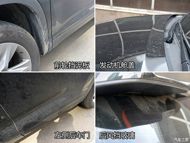 在响马帮体验的车型丰田汉兰达洗车前,我们对车辆进行了拍照记录,可以看到,车身大部分污渍是尘土和泥点,另外还有少量的鸟粪和虫尸。