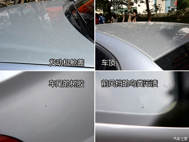 赶集易洗车的体验车型一汽-大众宝来同样两周未洗车,车身除了灰尘和泥点外,也有少部分鸟粪和树胶。