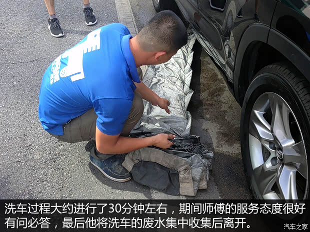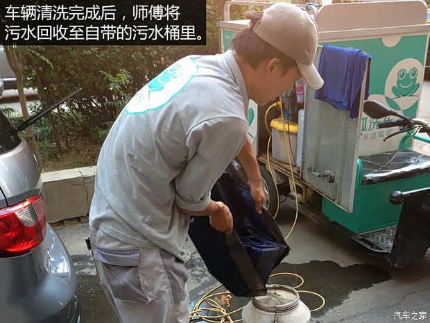 响马帮的洗车师傅在预约时间内到达洗车地点,在来之前还通过电话与我们确定了预约地点,整个洗车用时为30分钟左右,洗车结束后将废水集中收集到自带的废水桶中。