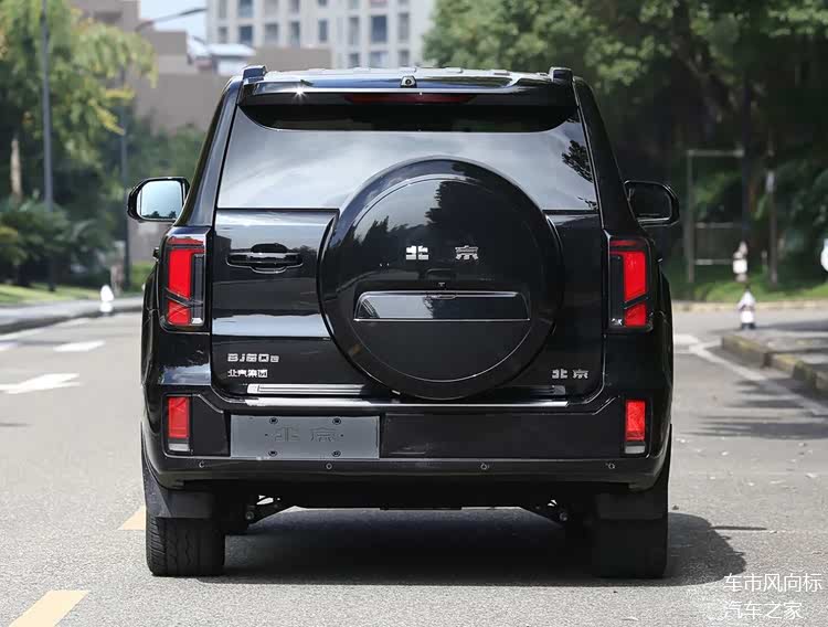 车辆尾部方正大气,身背“小书包”备胎,采用侧开门设计,车顶配有扰流板,后杠采用车身同色设计,尾灯组还是垂直布局,但内部的变化很明显,换上了更加粗壮的导光灯条,视觉上更加醒目,下方的雾灯也换成了竖条样式。