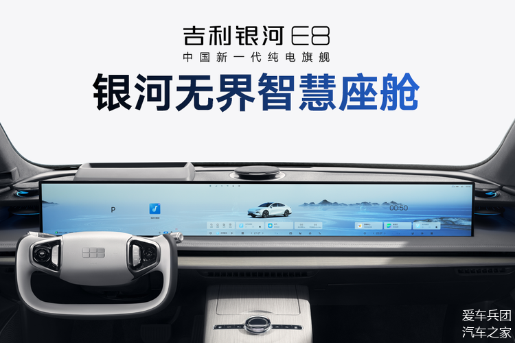 智能上,银河E8从硬件、软件到智能互联等方面,相对于竞品可以说做了全方位迭代,是同时拥有手机、无人机、卫星互联等智能科技赋能的纯电车型,也是全球首款支持Flyme Link的车型。除座舱采用45英寸8K专属无界智慧大屏全球最宽(1.13米)、全球屏占比最高(98%)、全球最薄(不到10毫米)和全球分辨率最高(8K)之外,还采用了全球算力最强的高通骁龙8295旗舰座舱芯片车规级芯片;而银河E8的智能互联功能,也得到了前所未有的拓展,不仅是全球首款支持Flyme Link车型,魅族21吉利银河定制版“三指一划”,手机界面即可直接出现在车机上,还可实现银河E8专属的“伴飞无人机”功能,无人机手抛就能自动伴飞,画面实时共享到大屏上。而吉利科技生态独有的卫星互联网,也可为银河E8提供双向卫星通信。