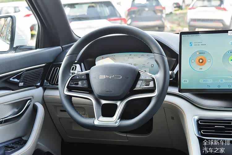 宋PLUS的内饰则带有传统燃油车的感觉,采用了大屏带小屏的设计,并且副驾驶前方还有一块钢琴烤漆饰板,车内也使用了比较丰富的材质,视觉上带来了更好的档次感。