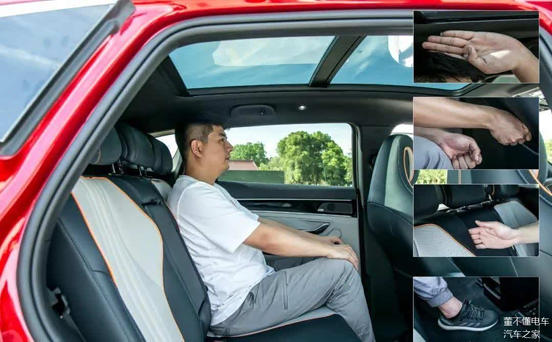空间方面,身高182cm,体重90kg的体验者,在保持前排标准的驾驶姿势下,后排腿部空间大于2拳。