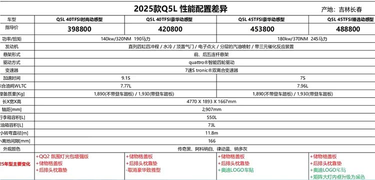 25款奥迪Q5L实车亮相!新增logo车贴+储物盒盖板,标配30色氛围灯