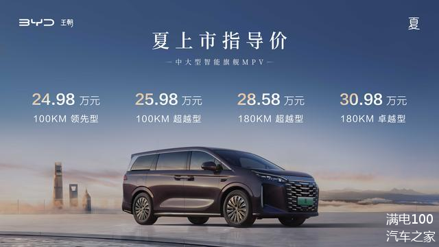 最近在MPV圈子里,比亚迪夏的讨论热度居高不下,作为一款定位为中大型插混MPV,一亮相就吸引了众多消费者的目光。这次比亚迪夏共推出4款配置车型,纯电续航分为100km/180km两个版本,售价区间为24.98-30.98万元。今天咱们就来聊聊,面对这几个不同配置的车型,究竟该怎么选。