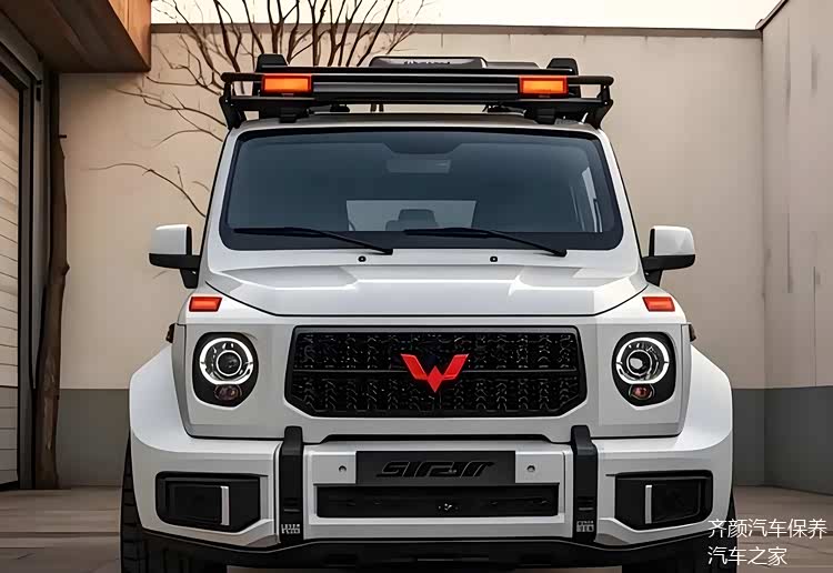 前脸部分,五菱采用了相对复古的设计元素,两侧配有炮眼大灯,内部则以横纵交错的网格布局,红色的LOGO在黑色背景的映衬下显得格外醒目,具有很高的辨识度。为了凸显力量感,机盖的上侧还增加了隆起的设计,这一细节处理与奔驰G的经典设计有异曲同工之妙。前包围虽然没有做太多硬化处理,但方形的布局与车身形成了很好的呼应,使得整车在视觉上更加协调。