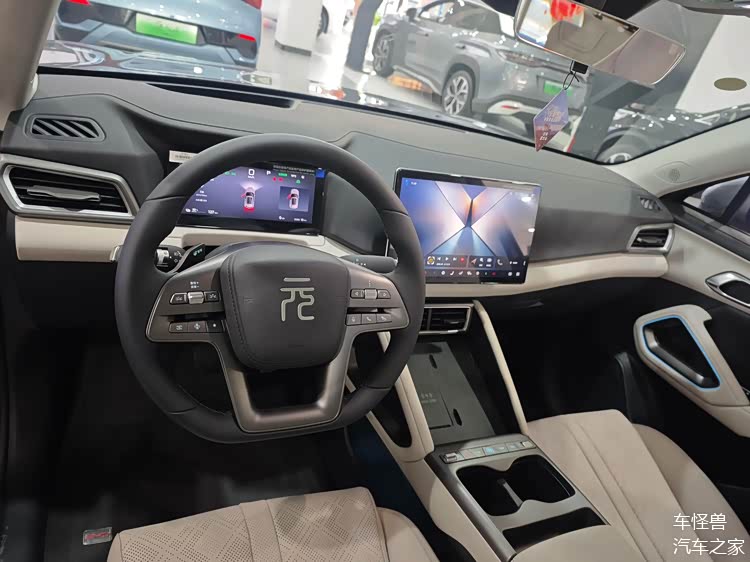 在保持了原始的环保座舱设计理念的同时,这一系列默认搭载了12.8英寸的悬浮式中控屏,并对DiLink 100这一智能座舱的高级版本进行了进一步的升级。另外,我们在四辐式多功能方向盘的尾部增加了智能驾驶拨杆,并使用了怀挡式的换挡机构。与此同时,副仪表台区也做了必要的调整,新增了50W手机的无线充电功能、一系列物理按键以及双杯架等多项功能。除此之外,元UP智驾版还有意引入W-HUD抬头显示功能,以及前排座椅的通风和加热系统、后排座椅中央头枕和后排空调出风口等一系列新的配置选项。