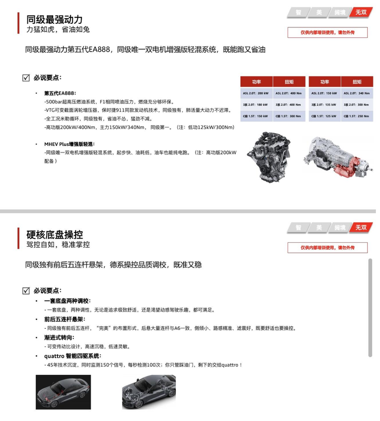 至于动力方面,奥迪A5L将搭载第五代EA888 2.0T发动机,或提供125kW、150kW、200kW(272马力)三种不同功率选择,并匹配MHEV Plus增强版轻混系统。此外,quattro四驱系统也不会缺席,底盘则采用前后五连杆独立悬架,并提供运动、舒适两种调校,还配备渐进式转向系统。