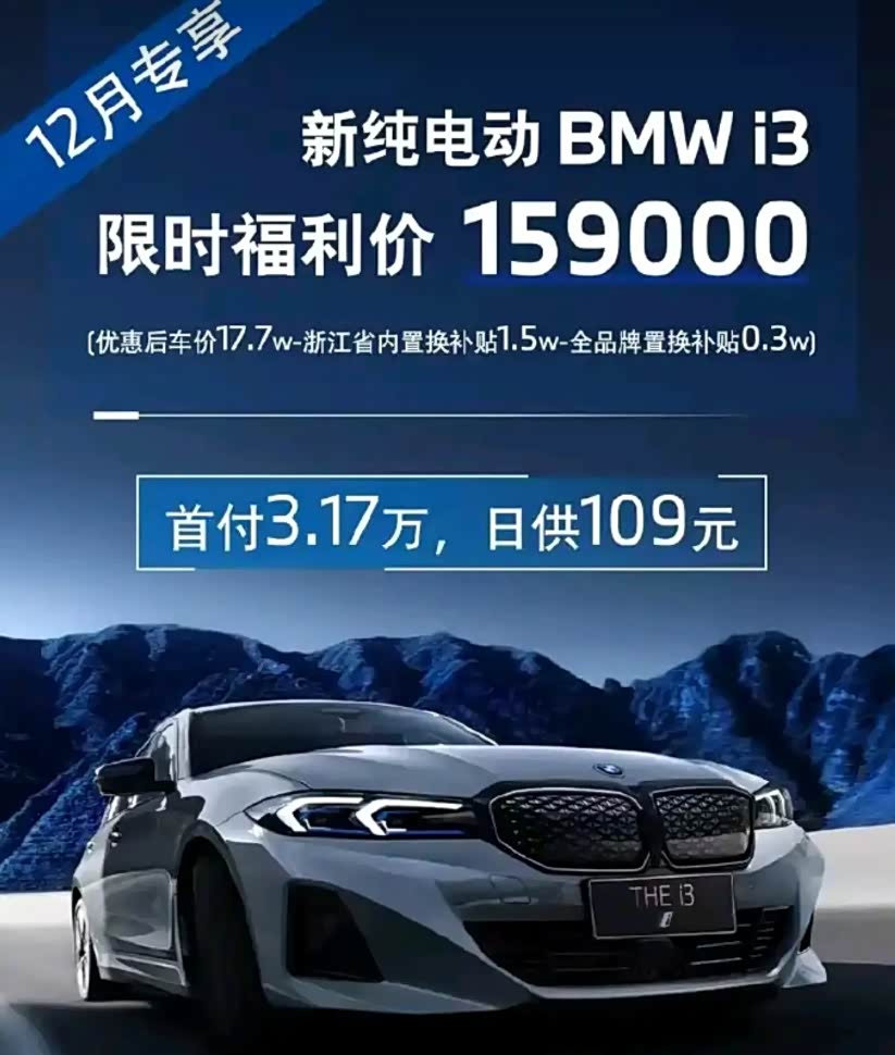 宝马i3,浙江地区推出一口价:15.9万。 值不值,单纯从有BMW品牌情节的人来说,超级值。 但如果你没有,那这款车依然是这个价位的第一优先选择。 这款车在16万价位基本是主流配置。目前国内16万价位并没有特别出众的选择。 宝马i3价格降到这个份上,也的确是豁出去了,指导价35.39万,15.9万,相当于打了45折。 这样打折,对于后续宝马i3出新款后,再想恢复原价就难了。