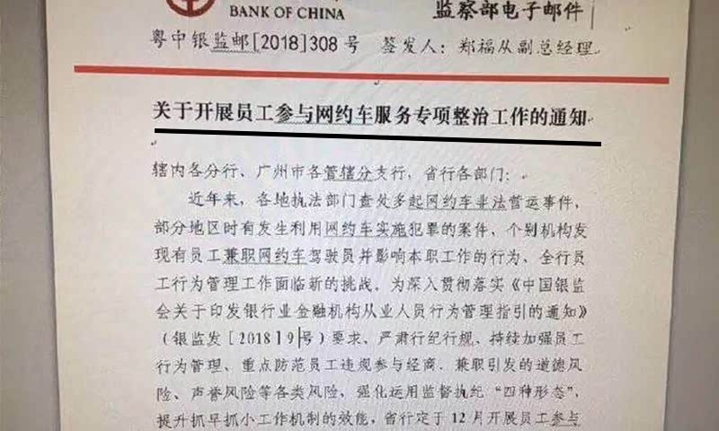 中国银行:禁止员工下班后兼职跑滴滴? 网友:您这管得也太宽了吧? 对此,您怎么看?您的单位对下班后的时间安排有规定吗?您支持中国银行的这一规定吗?