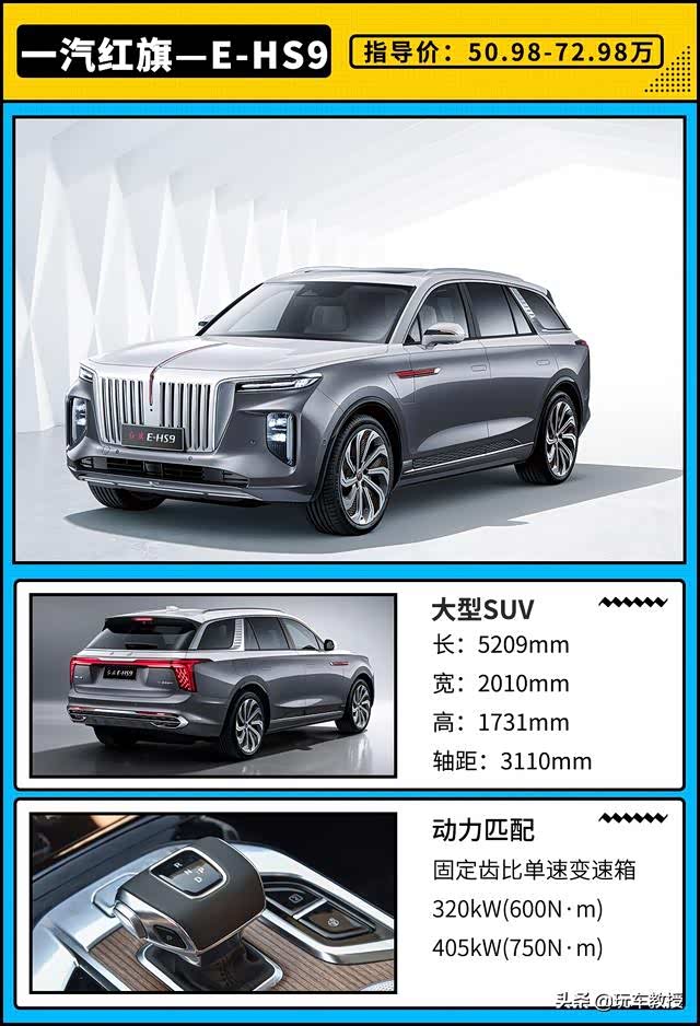 红旗E-HS9,这也是一款自主品牌里为数不多的大型SUV车型,新车共推出4款车型,售价区间为50.98-72.98万元。购车用户还可以享受到4年10万公里免费保养、终身免费保修、终身免费救援等服务政策。